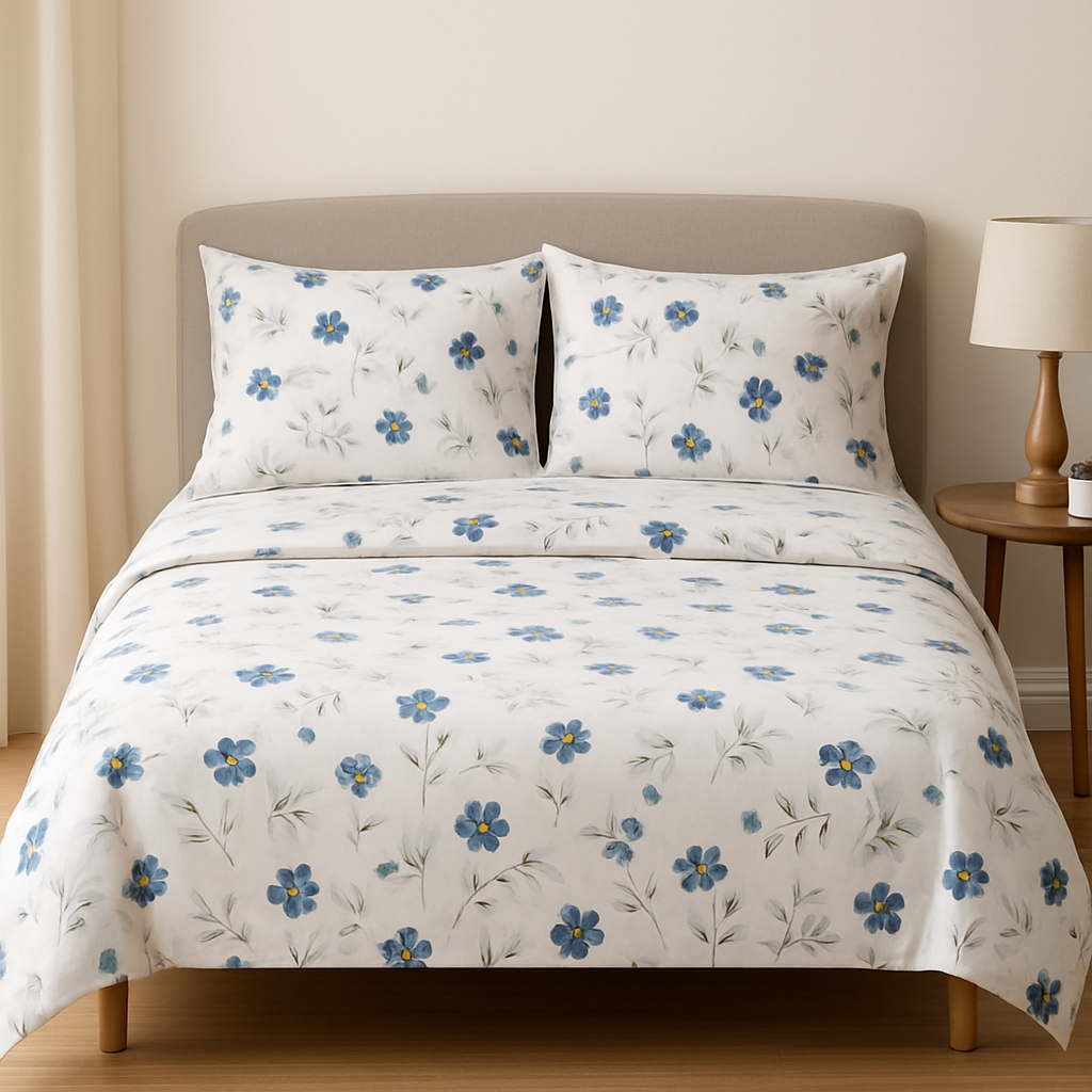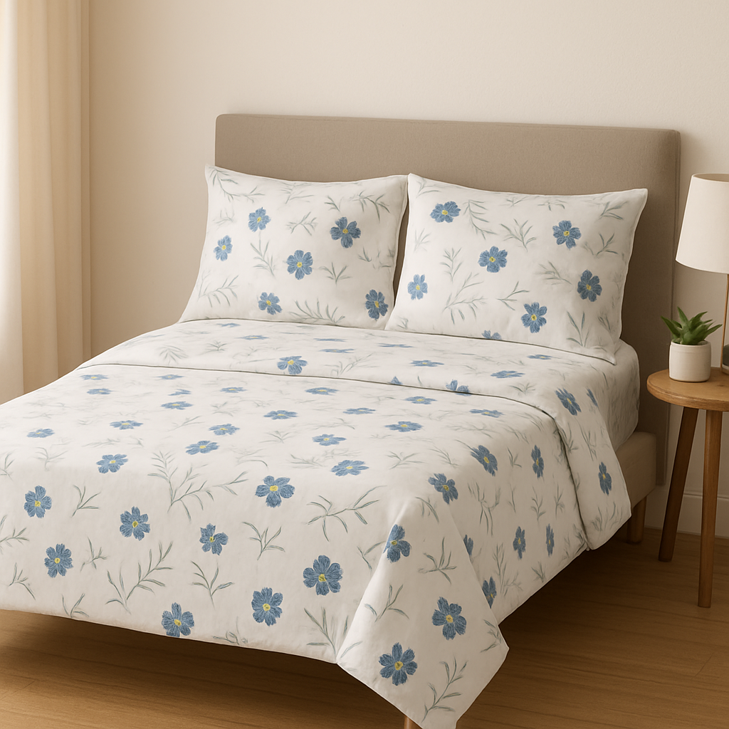 ✨ Blue Meadow Blossom – Premium Bedsheet Set (Anees Art)