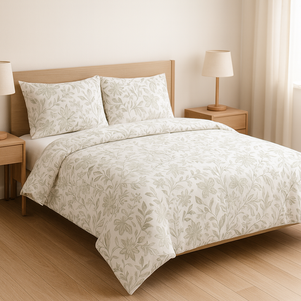 Soft, elegant and timeless — Sage Bloom Elegance brings a hotel-style luxury feel to your bedroom with a smooth finish and subtle woven stripes.