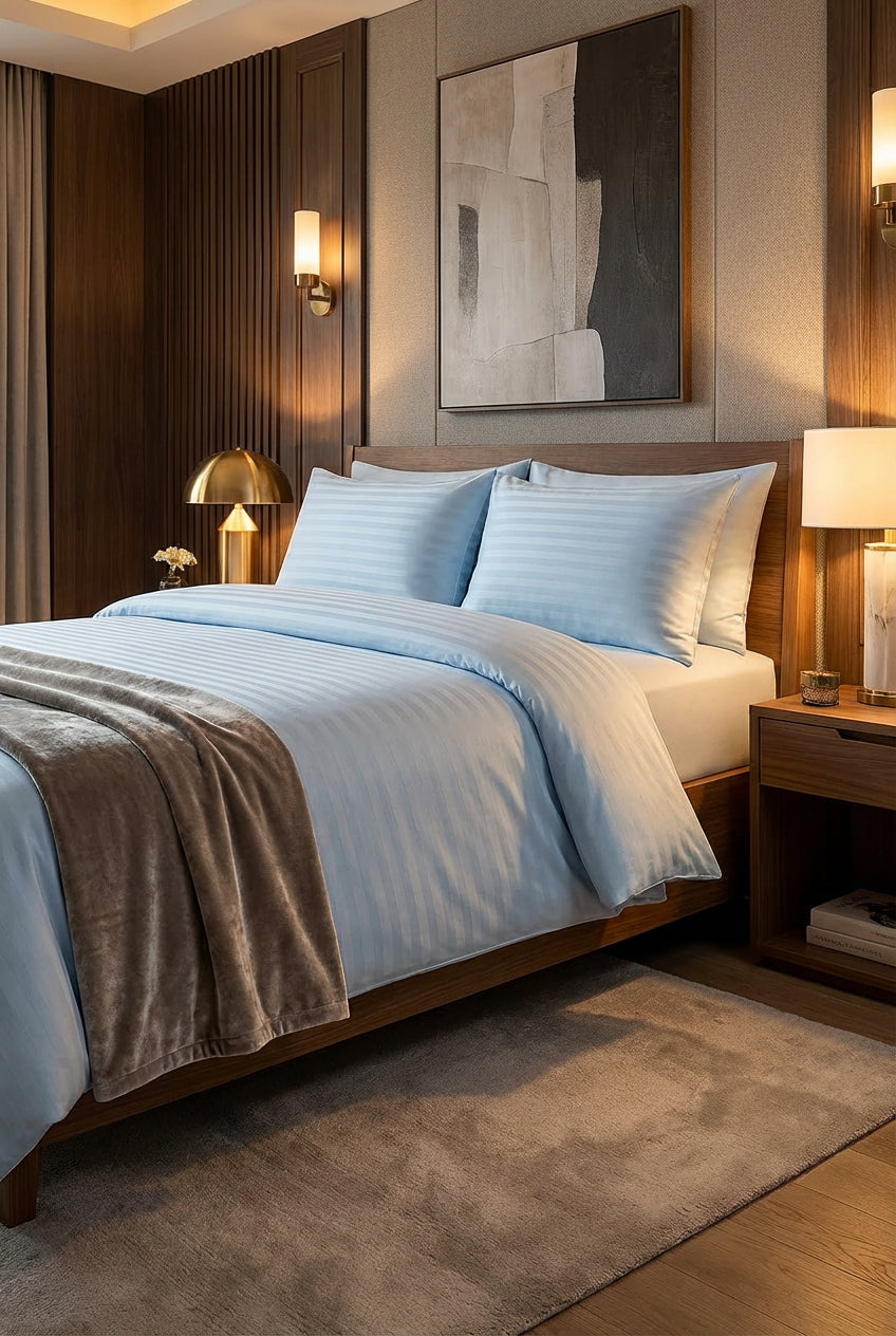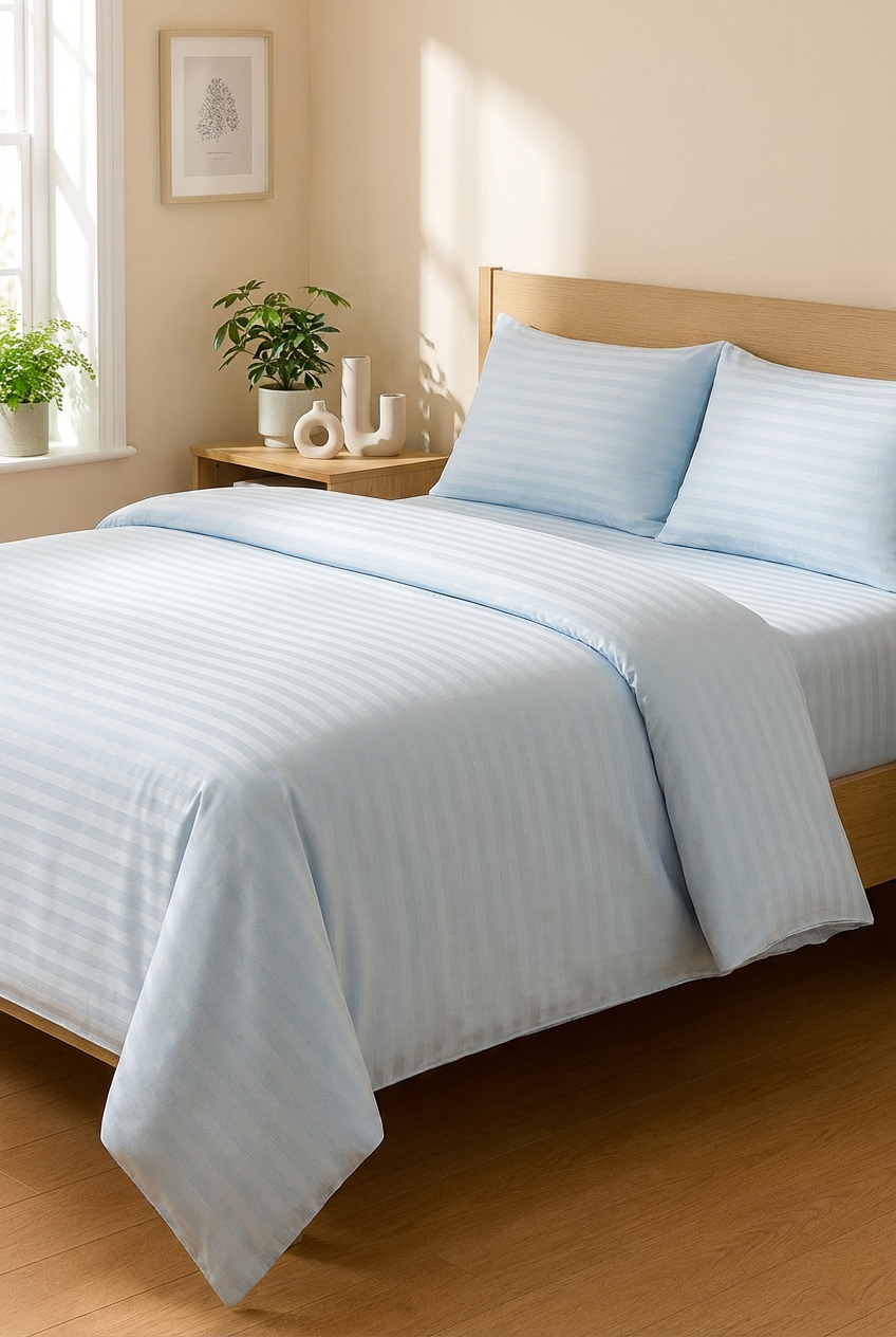 ✨ Sky Mist Luxe Stripe – Premium Bedsheet Set (Anees Art)
