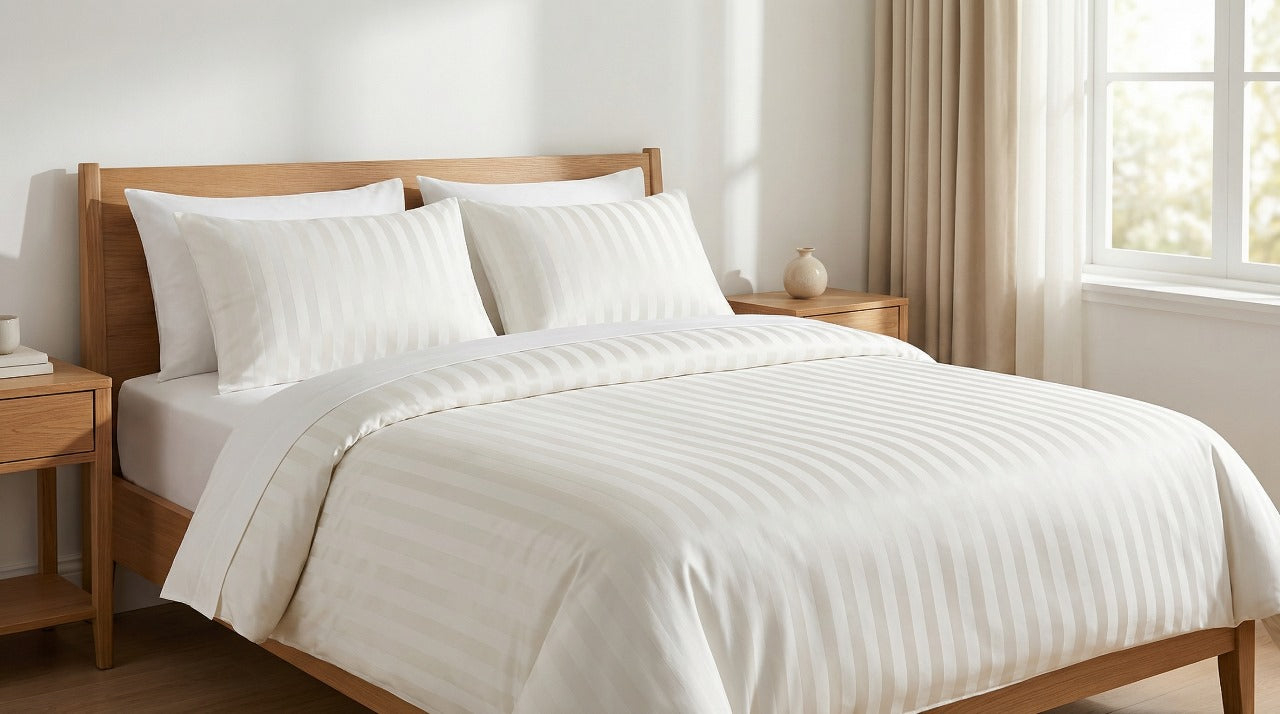 ✨ Ivory Luxe Stripe – Premium Bedsheet Set (Anees Art)